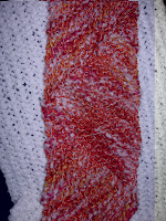 | Nesta imagem mais escura dá para perceber melhor as formas triangulares ao longo do cachecol |